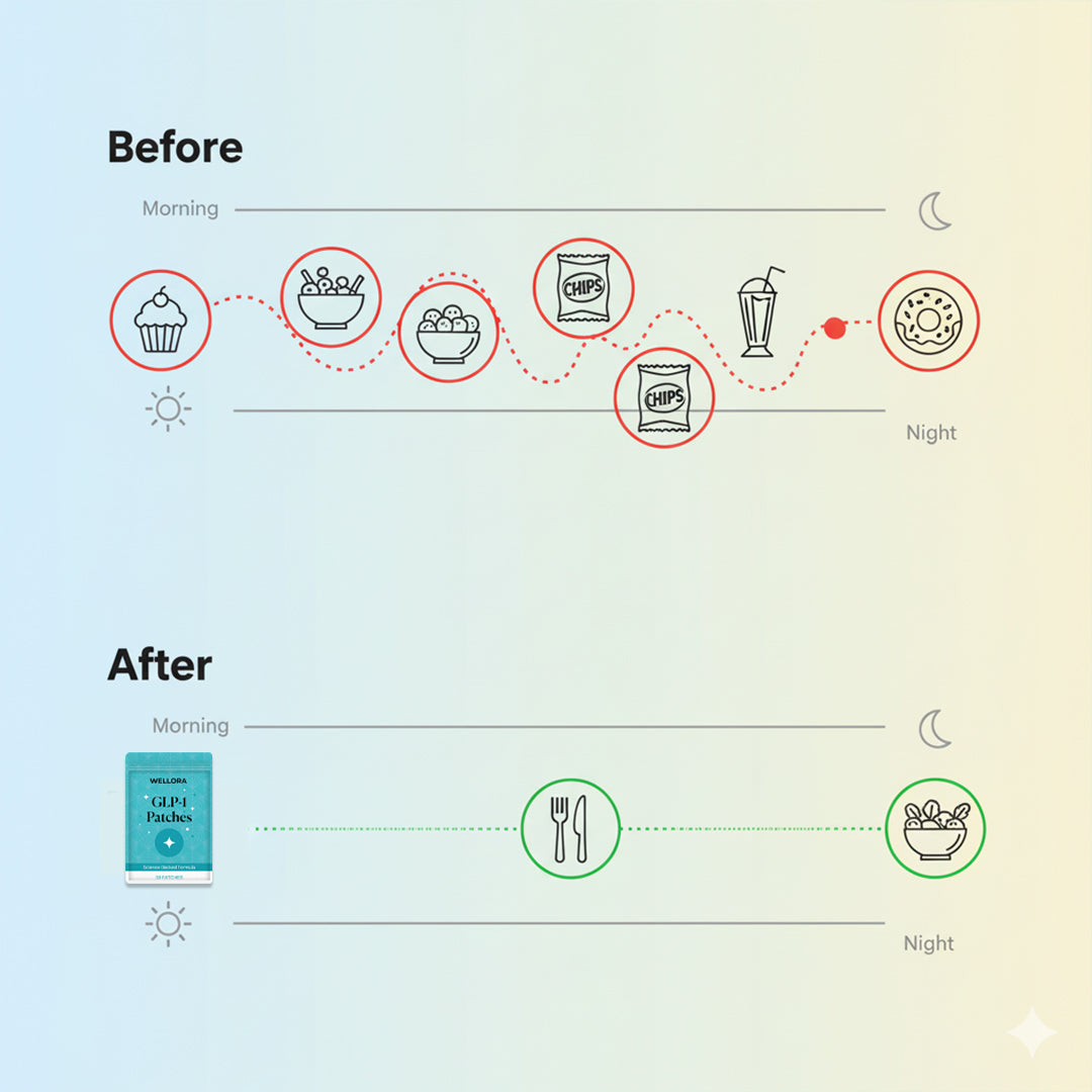 The Wellora Patch helps your body naturally support its own GLP-1 production — a key hormone for appetite and fullness. By boosting these signals, you’ll feel satisfied with smaller portions, reduce snacking, and gain better control over cravings.